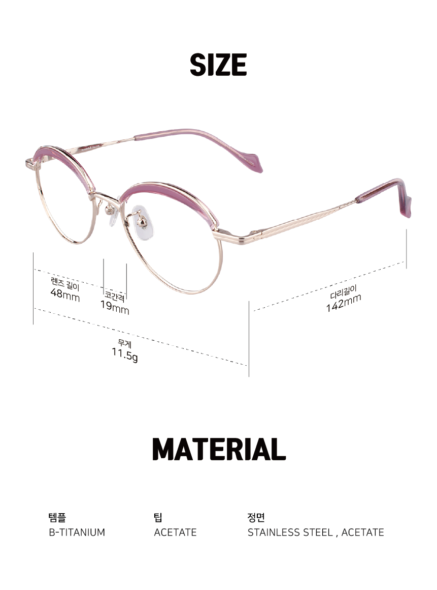 Lens Width : 48Bridge Size : 19Temple Length : 142Weight : 11.5 g